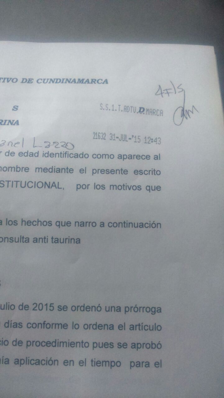 Como concejal de Bogotá y en estricto apego al derecho, radiqué ante e Tribual Superior de Cundinamarca, una solicitud para que se revise la constitucionalidad que tiene la consulta antitaurina a la que le dio concepto favorable el cabildo distrital.