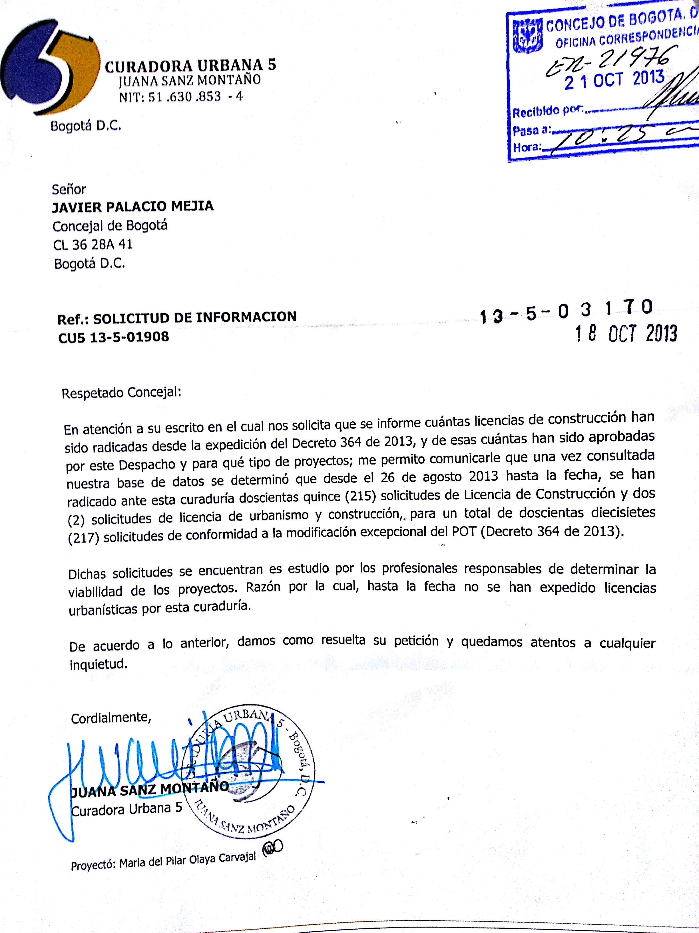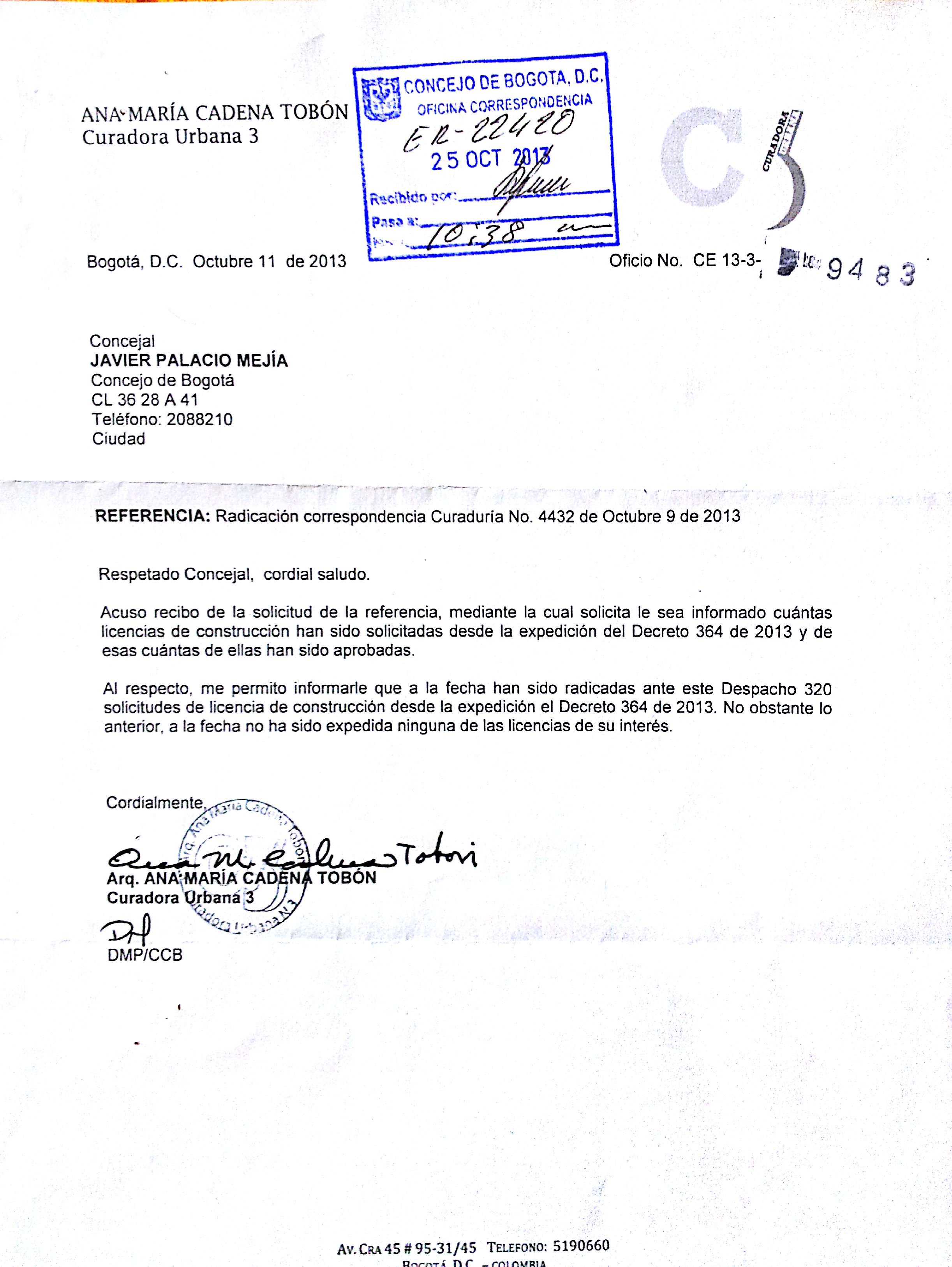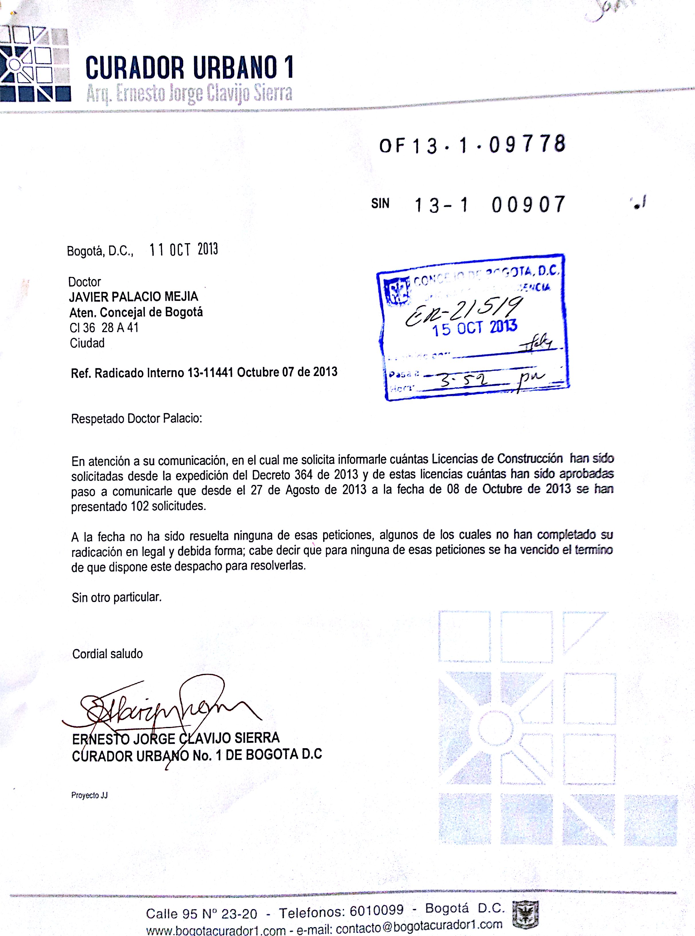 La inseguridad jurídica creada por el alcalde mayor o el desconocimiento que tienen los curadores del POT, que tuvo como cuatro versiones antes de su aprobación tiene paralizada la construcción de nuevos proyectos en Bogotá. Más 170 mil empleos ocupados por los sectores mas vulnerables de la ciudad están hoy en riesgo, pero el alcalde está mas preocupado de defender mediáticamente una norma que a todas luces es ilegal por usurpar tareas especificas del Concejo de Bogotá.